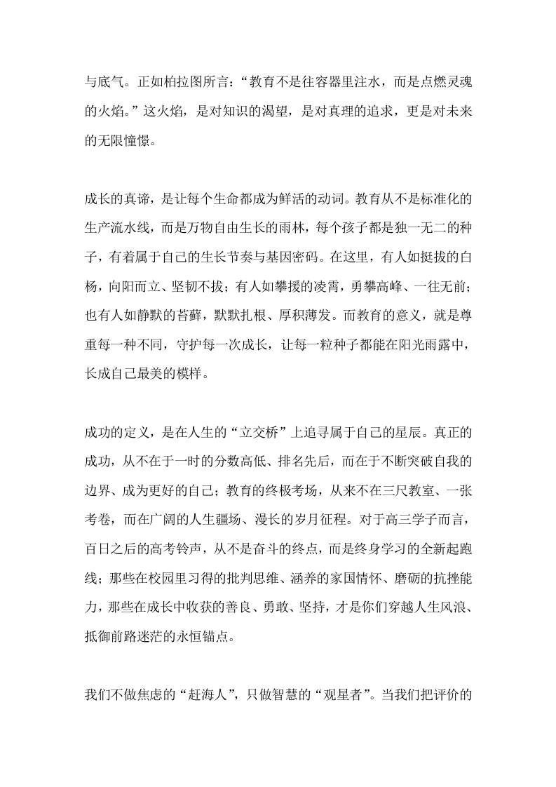校长在开学升旗典礼暨高三年级“百日誓师”大会上的讲话:距离高考仅剩一百天——不是倒计时的冰冷数字,而是青春拔节的刻度、信念淬火的节点。admin16小时前发布关注私信04214 ——预览已结束,还剩4页未读——开通会员后可免费下载高清完整文档 校长在开学升旗典礼暨高三年级“百日誓师”大会上的讲话:距离高考仅剩一百天——不是倒计时的冰冷数字,而是青春拔节的刻度、信念淬火的节点。此内容为付费资源,请付费后查看¥9.9黄金会员免费钻石会员免费暂时无法购买,请与站长联系您当前未登录!建议登陆后购买,可保存购买订单格式docx页数6 页大小15.90 KB付费资源© 版权声明文章版权归作者所有,未经允许请勿转载。THE END发言稿 喜欢就支持一下吧点赞14 分享QQ空间微博QQ好友海报分享复制链接收藏