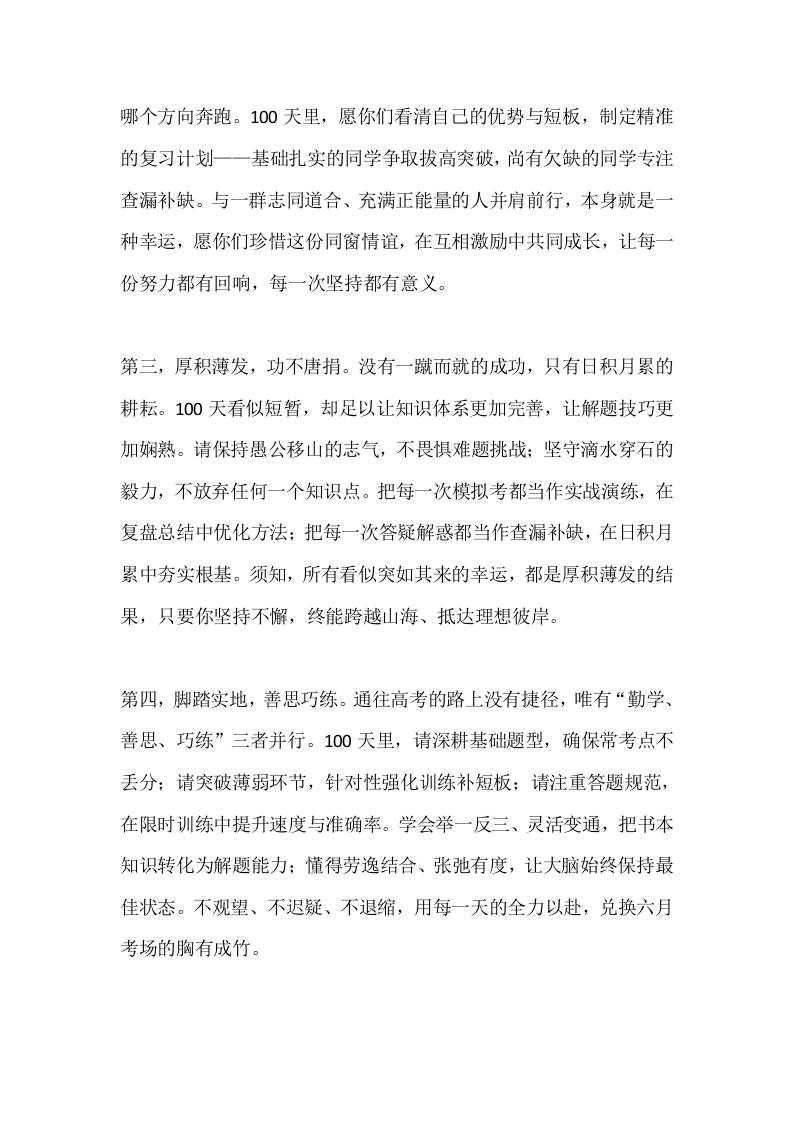 高三高考百日冲刺誓师大会校长讲话:百日时光,是黎明前的坚守,是花开前的孕育,是青春最滚烫的模样admin21小时前发布关注私信0225 ——预览已结束,还剩3页未读——开通会员后可免费下载高清完整文档 高三高考百日冲刺誓师大会校长讲话:百日时光,是黎明前的坚守,是花开前的孕育,是青春最滚烫的模样此内容为付费资源,请付费后查看¥9.9黄金会员免费钻石会员免费暂时无法购买,请与站长联系您当前未登录!建议登陆后购买,可保存购买订单格式docx页数5 页大小14.64 KB付费资源© 版权声明文章版权归作者所有,未经允许请勿转载。THE END发言稿 喜欢就支持一下吧点赞5 分享QQ空间微博QQ好友海报分享复制链接收藏