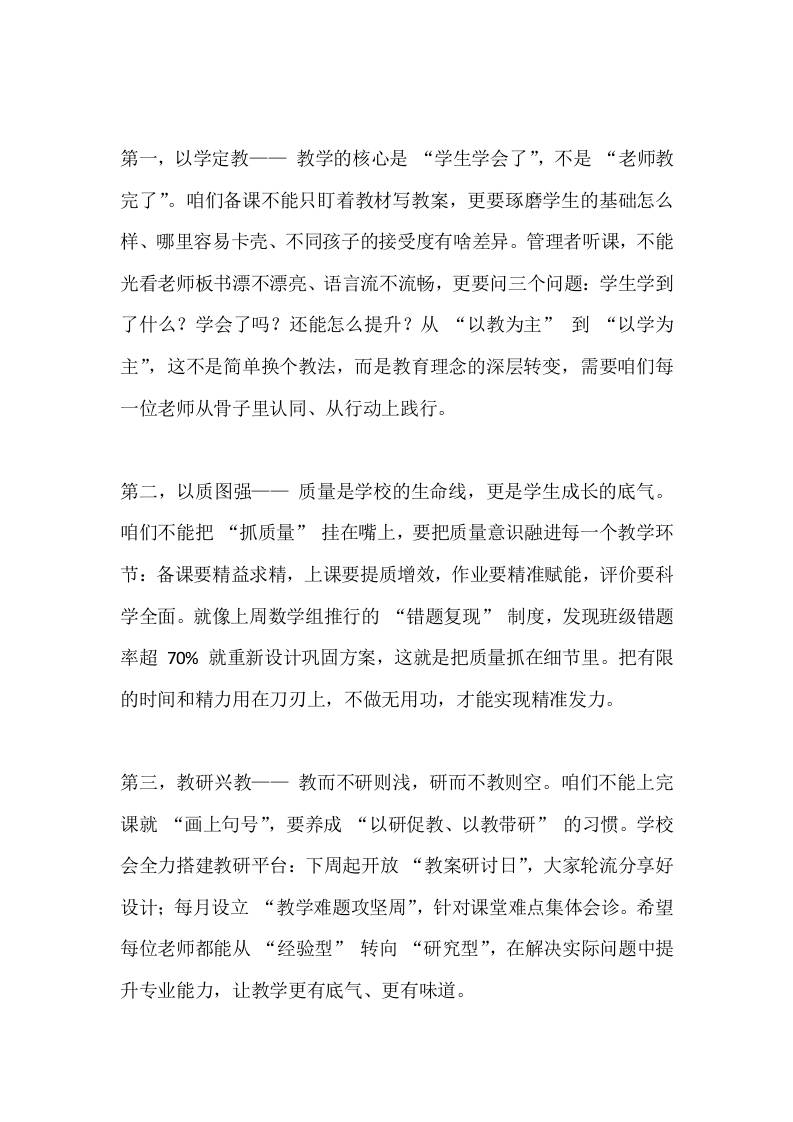 提高教学管理质量,校长讲话:“3685”工作推进思路!凝心聚力抓质量,实干笃行谋发展admin昨天发布关注私信03910 ——预览已结束,还剩8页未读——开通会员后可免费下载高清完整文档 提高教学管理质量,校长讲话:“3685”工作推进思路!凝心聚力抓质量,实干笃行谋发展此内容为付费资源,请付费后查看¥9.9黄金会员免费钻石会员免费暂时无法购买,请与站长联系您当前未登录!建议登陆后购买,可保存购买订单格式docx页数10 页大小17.17 KB付费资源© 版权声明文章版权归作者所有,未经允许请勿转载。THE END发言稿 喜欢就支持一下吧点赞10 分享QQ空间微博QQ好友海报分享复制链接收藏