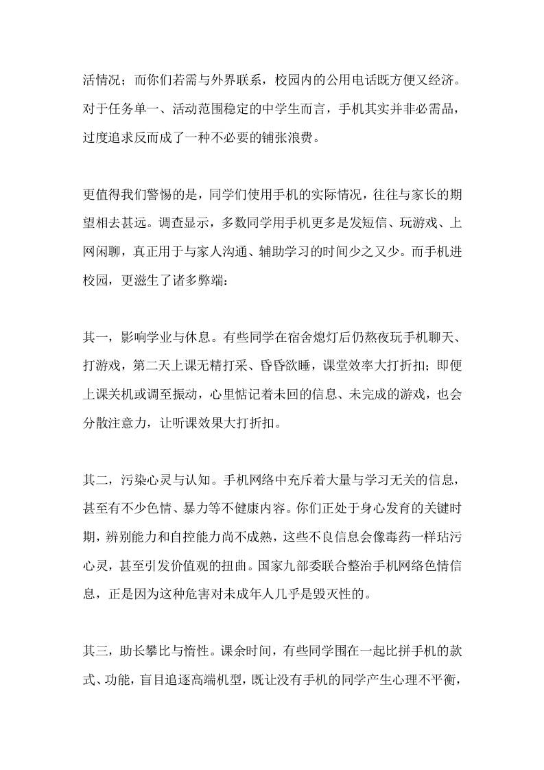 校长在国旗下讲话:学生严禁使用手机admin18小时前发布关注私信03311 ——预览已结束,还剩2页未读——开通会员后可免费下载高清完整文档 校长在国旗下讲话:学生严禁使用手机此内容为付费资源,请付费后查看¥9.9黄金会员免费钻石会员免费暂时无法购买,请与站长联系您当前未登录!建议登陆后购买,可保存购买订单格式docx页数4 页大小13.52 KB付费资源© 版权声明文章版权归作者所有,未经允许请勿转载。THE END国旗下讲话 喜欢就支持一下吧点赞11 分享QQ空间微博QQ好友海报分享复制链接收藏