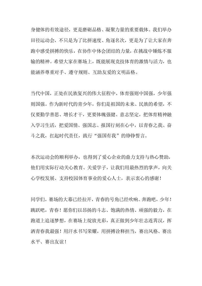 春季校园田径运动会开幕式校长讲话:少年壮志连霄汉,挥洒青春我最强admin昨天发布关注私信03713 ——预览已结束,还剩1页未读——开通会员后可免费下载高清完整文档 春季校园田径运动会开幕式校长讲话:少年壮志连霄汉,挥洒青春我最强此内容为付费资源,请付费后查看¥9.9黄金会员免费钻石会员免费暂时无法购买,请与站长联系您当前未登录!建议登陆后购买,可保存购买订单格式docx页数3 页大小12.13 KB付费资源© 版权声明文章版权归作者所有,未经允许请勿转载。THE END发言稿 喜欢就支持一下吧点赞13 分享QQ空间微博QQ好友海报分享复制链接收藏