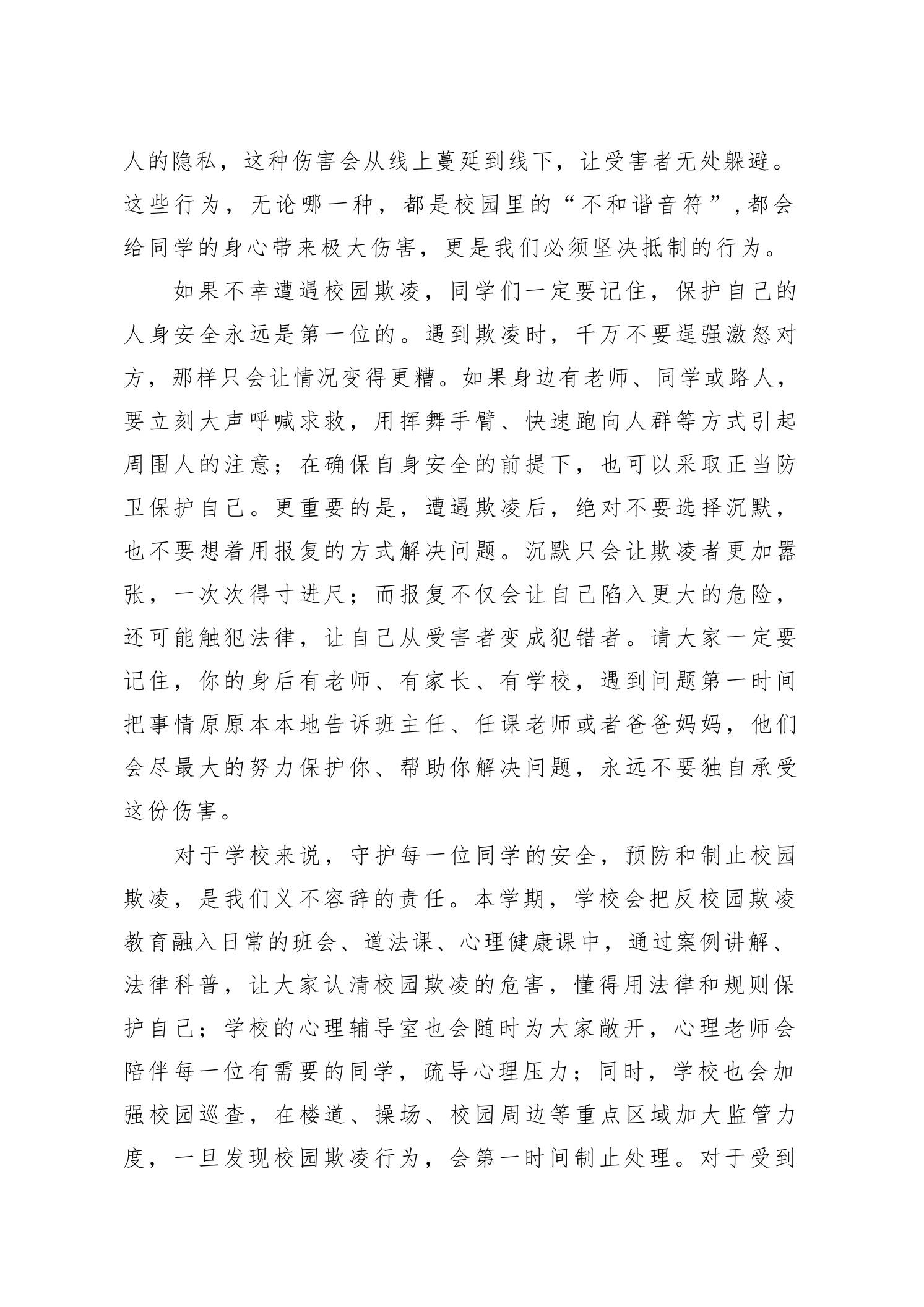 校长国旗下讲话:牢记校园欺凌“三不”原则,守护美好校园admin昨天发布关注私信0519 ——预览已结束,还剩2页未读——开通会员后可免费下载高清完整文档 校长国旗下讲话:牢记校园欺凌“三不”原则,守护美好校园此内容为付费资源,请付费后查看¥9.9黄金会员免费钻石会员免费暂时无法购买,请与站长联系您当前未登录!建议登陆后购买,可保存购买订单格式docx页数4 页大小11.04 KB付费资源© 版权声明文章版权归作者所有,未经允许请勿转载。THE END国旗下讲话 喜欢就支持一下吧点赞9 分享QQ空间微博QQ好友海报分享复制链接收藏