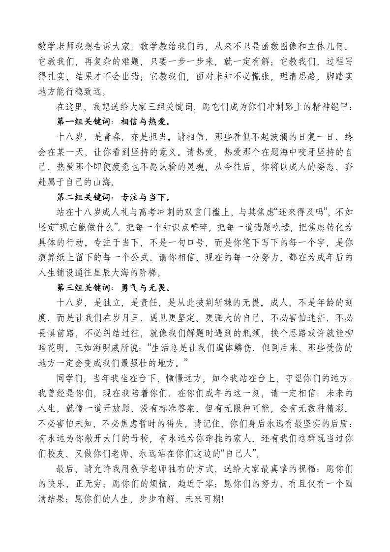 在XX二中高三成人礼暨高考誓师大会上教师代表发言:十八而志赴新程百日砺剑创辉煌admin6天前发布关注私信0459 ——预览已结束,还剩1页未读——开通会员后可免费下载高清完整文档 在XX二中高三成人礼暨高考誓师大会上教师代表发言:十八而志赴新程百日砺剑创辉煌此内容为付费资源,请付费后查看¥9.9黄金会员免费钻石会员免费暂时无法购买,请与站长联系您当前未登录!建议登陆后购买,可保存购买订单格式docx页数3 页大小588.71 KB付费资源© 版权声明文章版权归作者所有,未经允许请勿转载。THE END发言稿 喜欢就支持一下吧点赞9 分享QQ空间微博QQ好友海报分享复制链接收藏