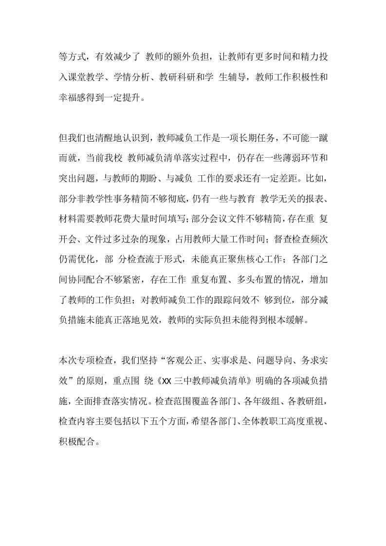 抓好教师减负让教师安心从教——XX三中教师减负清单落实情况检查admin12小时前发布关注私信02210 ——预览已结束,还剩4页未读——开通会员后可免费下载高清完整文档 抓好教师减负让教师安心从教——XX三中教师减负清单落实情况检查此内容为付费资源,请付费后查看¥9.9黄金会员免费钻石会员免费暂时无法购买,请与站长联系您当前未登录!建议登陆后购买,可保存购买订单格式docx页数6 页大小15.03 KB付费资源© 版权声明文章版权归作者所有,未经允许请勿转载。THE END管理相关 喜欢就支持一下吧点赞10 分享QQ空间微博QQ好友海报分享复制链接收藏