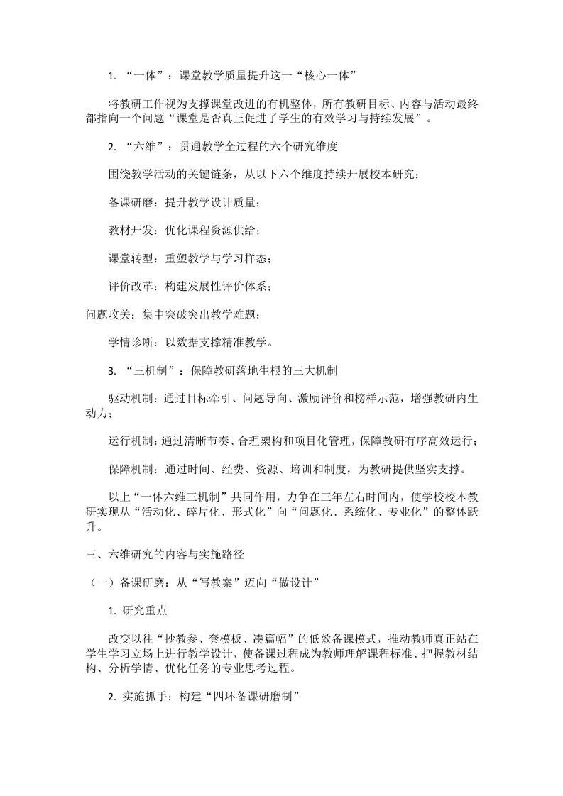 学校校本教研体系建设实施方案:“一体六维三机制”整体推进框架admin17小时前发布关注私信0358 ——预览已结束,还剩13页未读——开通会员后可免费下载高清完整文档 学校校本教研体系建设实施方案:“一体六维三机制”整体推进框架此内容为付费资源,请付费后查看¥9.9黄金会员免费钻石会员免费暂时无法购买,请与站长联系您当前未登录!建议登陆后购买,可保存购买订单格式docx页数15 页大小27.04 KB付费资源© 版权声明文章版权归作者所有,未经允许请勿转载。THE END管理相关 喜欢就支持一下吧点赞8 分享QQ空间微博QQ好友海报分享复制链接收藏
