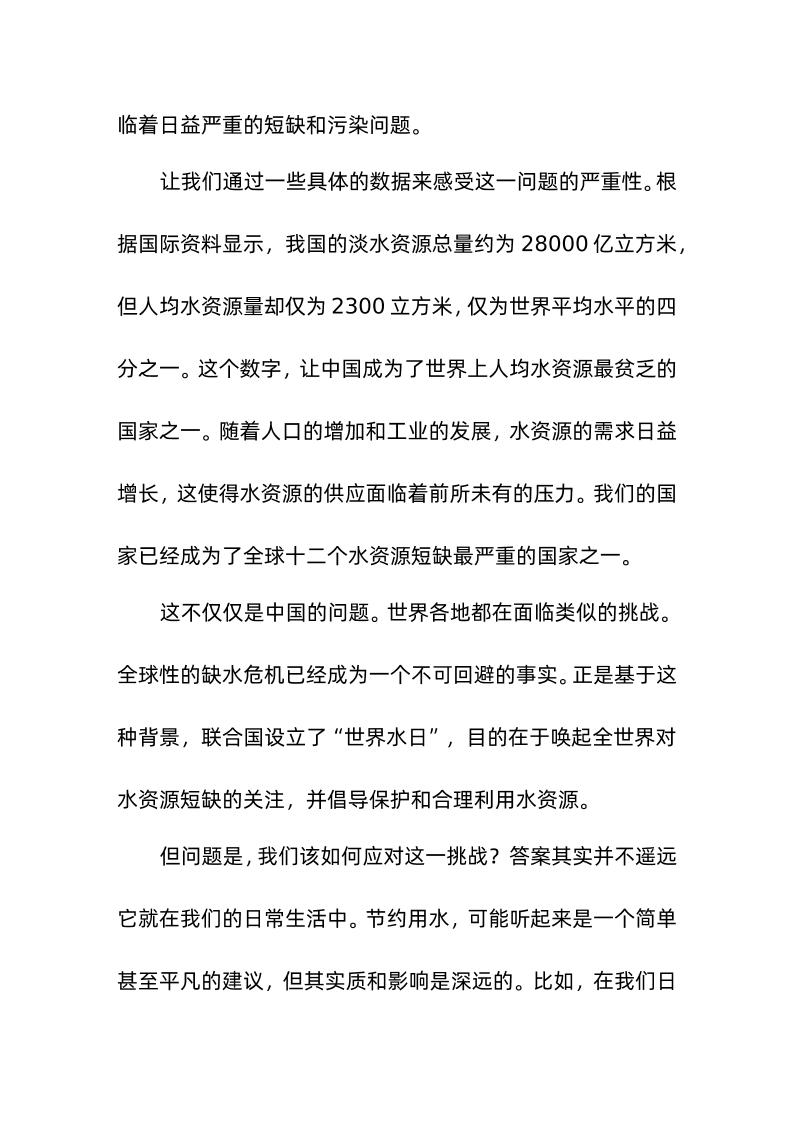 2024世界水日,校长国旗下讲话珍爱每滴水,共建绿色未来admin7个月前发布关注私信04812 ——预览已结束,还剩2页未读——开通会员后可免费下载高清完整文档 2024世界水日,校长国旗下讲话珍爱每滴水,共建绿色未来此内容为付费资源,请付费后查看¥9.9黄金会员免费钻石会员免费暂时无法购买,请与站长联系您当前未登录!建议登陆后购买,可保存购买订单格式doc页数4 页大小13.00 KB付费资源© 版权声明文章版权归作者所有,未经允许请勿转载。THE END国旗下讲话 喜欢就支持一下吧点赞12 分享QQ空间微博QQ好友海报分享复制链接收藏