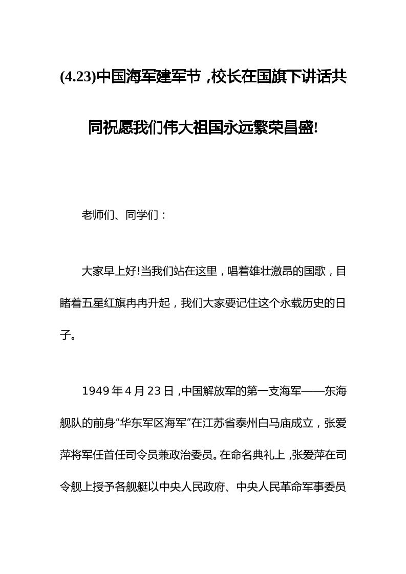 (4.23)中国海军建军节,校长在国旗下讲话共同祝愿我们伟大祖国永远繁荣昌盛!admin6个月前发布关注私信03414 ——预览已结束,还剩2页未读——开通会员后可免费下载高清完整文档 (4.23)中国海军建军节,校长在国旗下讲话共同祝愿我们伟大祖国永远繁荣昌盛!此内容为付费资源,请付费后查看¥9.9黄金会员免费钻石会员免费暂时无法购买,请与站长联系您当前未登录!建议登陆后购买,可保存购买订单格式doc页数4 页大小13.00 KB付费资源© 版权声明文章版权归作者所有,未经允许请勿转载。THE END国旗下讲话 喜欢就支持一下吧点赞14 分享QQ空间微博QQ好友海报分享复制链接收藏