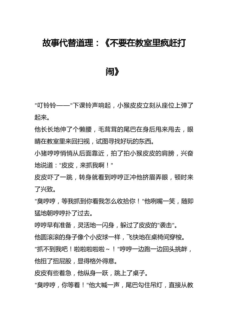 故事代替道理:《不要在教室里疯赶打闹》admin6个月前发布关注私信05510 ——预览已结束,还剩2页未读——开通会员后可免费下载高清完整文档 故事代替道理:《不要在教室里疯赶打闹》此内容为付费资源,请付费后查看¥9.9黄金会员免费钻石会员免费暂时无法购买,请与站长联系您当前未登录!建议登陆后购买,可保存购买订单格式docx页数4 页大小13.70 KB付费资源© 版权声明文章版权归作者所有,未经允许请勿转载。THE END育人故事 喜欢就支持一下吧点赞10 分享QQ空间微博QQ好友海报分享复制链接收藏