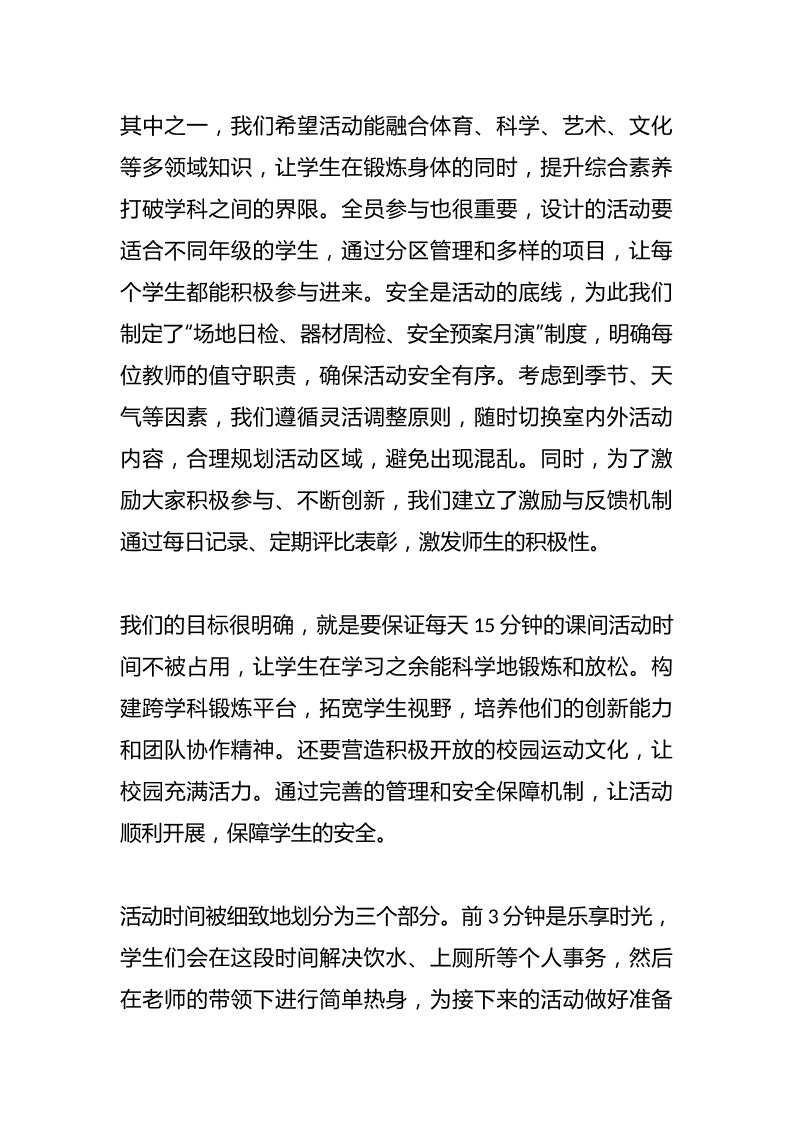 课间15分钟“微运动”经验交流会上,副校长分享汇报发言:活力课间,快乐成长admin6个月前发布关注私信0338 ——预览已结束,还剩3页未读——开通会员后可免费下载高清完整文档 课间15分钟“微运动”经验交流会上,副校长分享汇报发言:活力课间,快乐成长此内容为付费资源,请付费后查看¥9.9黄金会员免费钻石会员免费暂时无法购买,请与站长联系您当前未登录!建议登陆后购买,可保存购买订单格式docx页数5 页大小14.55 KB付费资源© 版权声明文章版权归作者所有,未经允许请勿转载。THE END发言稿 喜欢就支持一下吧点赞8 分享QQ空间微博QQ好友海报分享复制链接收藏