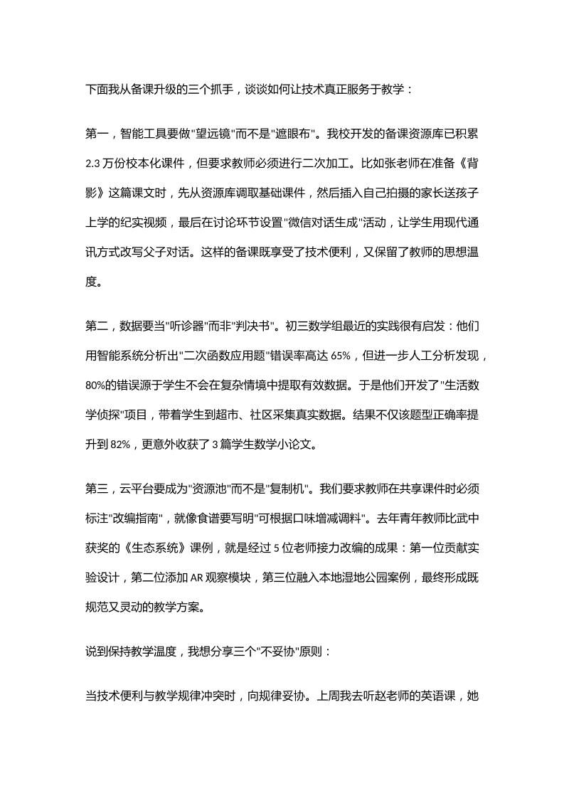 校长在教育教学研讨会上讲话:信息化2.0时代的教育坚守——技术赋能下的备课升级与教学温度保持admin6个月前发布关注私信04713 ——预览已结束,还剩2页未读——开通会员后可免费下载高清完整文档 校长在教育教学研讨会上讲话:信息化2.0时代的教育坚守——技术赋能下的备课升级与教学温度保持此内容为付费资源,请付费后查看¥9.9黄金会员免费钻石会员免费暂时无法购买,请与站长联系您当前未登录!建议登陆后购买,可保存购买订单格式docx页数4 页大小14.11 KB付费资源© 版权声明文章版权归作者所有,未经允许请勿转载。THE END发言稿 喜欢就支持一下吧点赞13 分享QQ空间微博QQ好友海报分享复制链接收藏