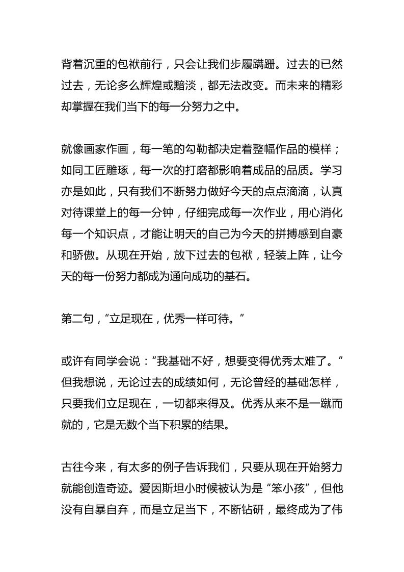 期中考试总动员校长讲话:期中逆袭倒计时!3句话点燃你的学霸基因admin6个月前发布关注私信02613 ——预览已结束,还剩2页未读——开通会员后可免费下载高清完整文档 期中考试总动员校长讲话:期中逆袭倒计时!3句话点燃你的学霸基因此内容为付费资源,请付费后查看¥9.9黄金会员免费钻石会员免费暂时无法购买,请与站长联系您当前未登录!建议登陆后购买,可保存购买订单格式docx页数4 页大小13.48 KB付费资源© 版权声明文章版权归作者所有,未经允许请勿转载。THE END发言稿 喜欢就支持一下吧点赞13 分享QQ空间微博QQ好友海报分享复制链接收藏