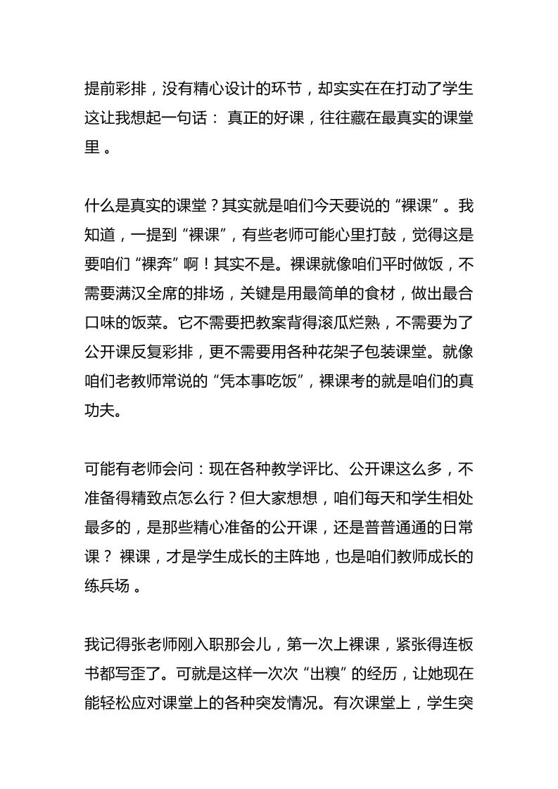 校长在全体教师会上讲话:“裸课”才是站稳讲台的终极密码admin6个月前发布关注私信0228 ——预览已结束,还剩3页未读——开通会员后可免费下载高清完整文档 校长在全体教师会上讲话:“裸课”才是站稳讲台的终极密码此内容为付费资源,请付费后查看¥9.9黄金会员免费钻石会员免费暂时无法购买,请与站长联系您当前未登录!建议登陆后购买,可保存购买订单格式docx页数5 页大小13.91 KB付费资源© 版权声明文章版权归作者所有,未经允许请勿转载。THE END发言稿 喜欢就支持一下吧点赞8 分享QQ空间微博QQ好友海报分享复制链接收藏