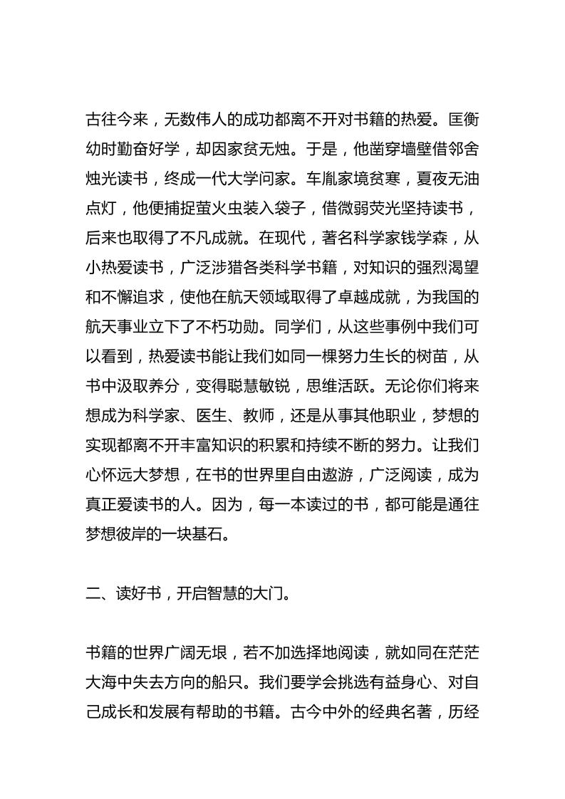 世界读书日,校长在国旗下讲话:解锁“爱读书、读好书、善读书”的超能力,让你人生开挂admin6个月前发布关注私信0287 ——预览已结束,还剩2页未读——开通会员后可免费下载高清完整文档 世界读书日,校长在国旗下讲话:解锁“爱读书、读好书、善读书”的超能力,让你人生开挂此内容为付费资源,请付费后查看¥9.9黄金会员免费钻石会员免费暂时无法购买,请与站长联系您当前未登录!建议登陆后购买,可保存购买订单格式docx页数4 页大小13.68 KB付费资源© 版权声明文章版权归作者所有,未经允许请勿转载。THE END发言稿 喜欢就支持一下吧点赞7 分享QQ空间微博QQ好友海报分享复制链接收藏