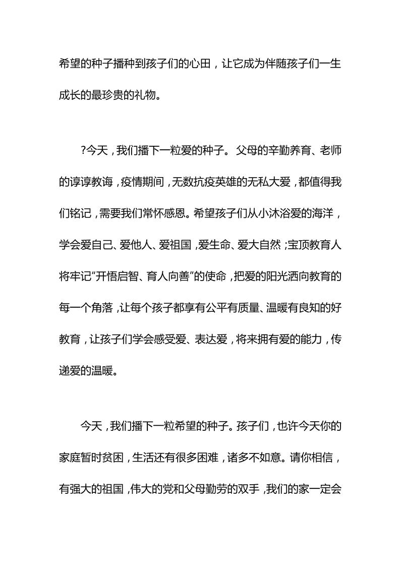 六一国际儿童节校长致辞一粒种子改变世界admin6个月前发布关注私信0316 ——预览已结束,还剩2页未读——开通会员后可免费下载高清完整文档 六一国际儿童节校长致辞一粒种子改变世界此内容为付费资源,请付费后查看¥9.9黄金会员免费钻石会员免费暂时无法购买,请与站长联系您当前未登录!建议登陆后购买,可保存购买订单格式doc页数4 页大小13.50 KB付费资源© 版权声明文章版权归作者所有,未经允许请勿转载。THE END发言稿 喜欢就支持一下吧点赞6 分享QQ空间微博QQ好友海报分享复制链接收藏
