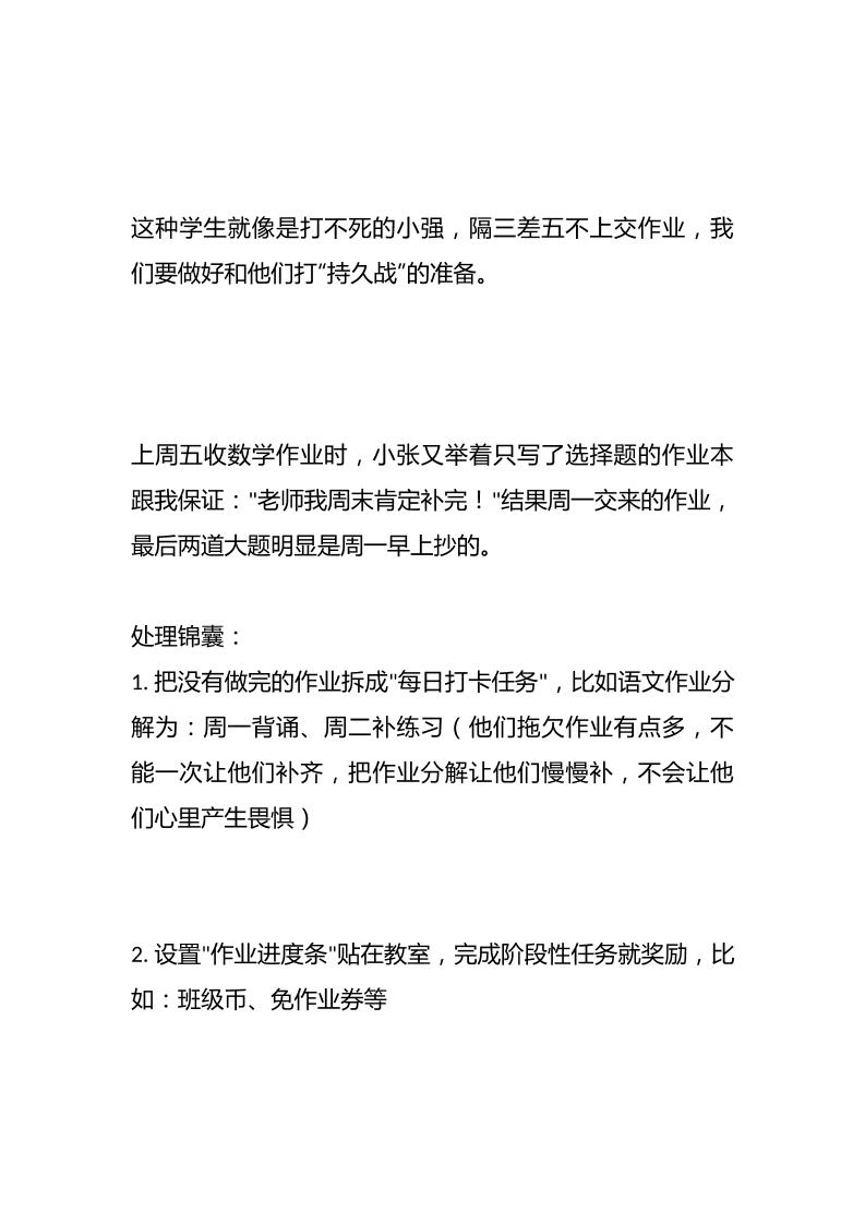 四招拿捏学生不交作业:从“对抗”到“自觉”——我的教学之路admin5个月前发布关注私信0268 ——预览已结束,还剩4页未读——开通会员后可免费下载高清完整文档 四招拿捏学生不交作业:从“对抗”到“自觉”——我的教学之路此内容为付费资源,请付费后查看¥9.9黄金会员免费钻石会员免费暂时无法购买,请与站长联系您当前未登录!建议登陆后购买,可保存购买订单格式docx页数6 页大小13.66 KB付费资源© 版权声明文章版权归作者所有,未经允许请勿转载。THE END管理相关 喜欢就支持一下吧点赞8 分享QQ空间微博QQ好友海报分享复制链接收藏