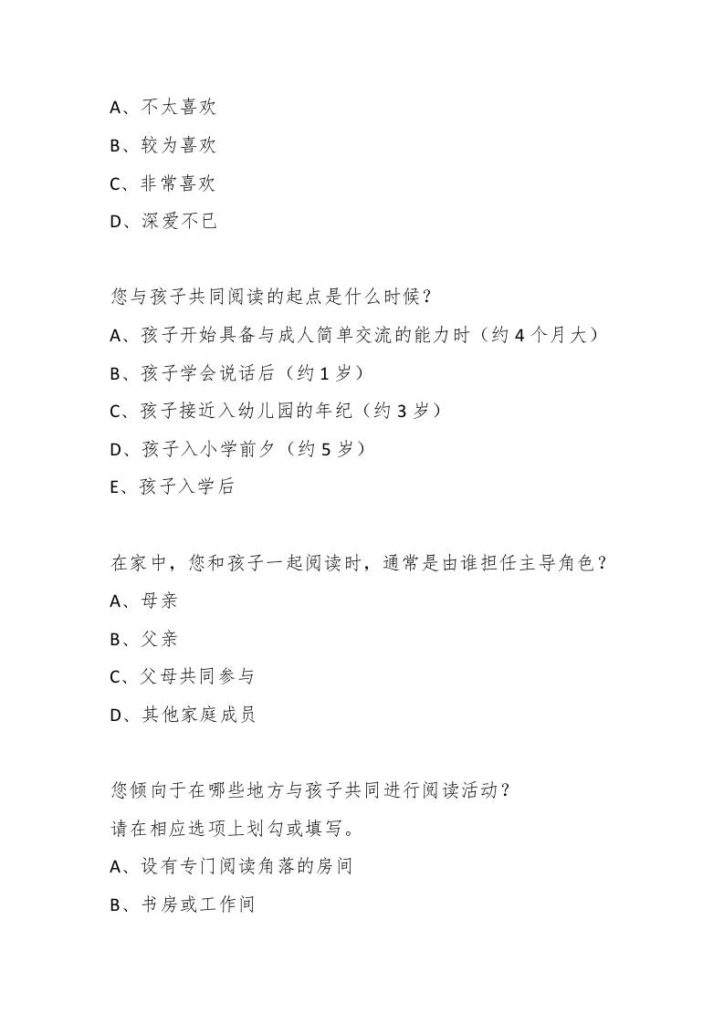 家庭亲子阅读情况调查问卷admin4个月前发布关注私信02713 ——预览已结束,还剩4页未读——开通会员后可免费下载高清完整文档 家庭亲子阅读情况调查问卷此内容为付费资源,请付费后查看¥9.9黄金会员免费钻石会员免费暂时无法购买,请与站长联系您当前未登录!建议登陆后购买,可保存购买订单格式docx页数6 页大小13.73 KB付费资源© 版权声明文章版权归作者所有,未经允许请勿转载。THE END管理相关 喜欢就支持一下吧点赞13 分享QQ空间微博QQ好友海报分享复制链接收藏