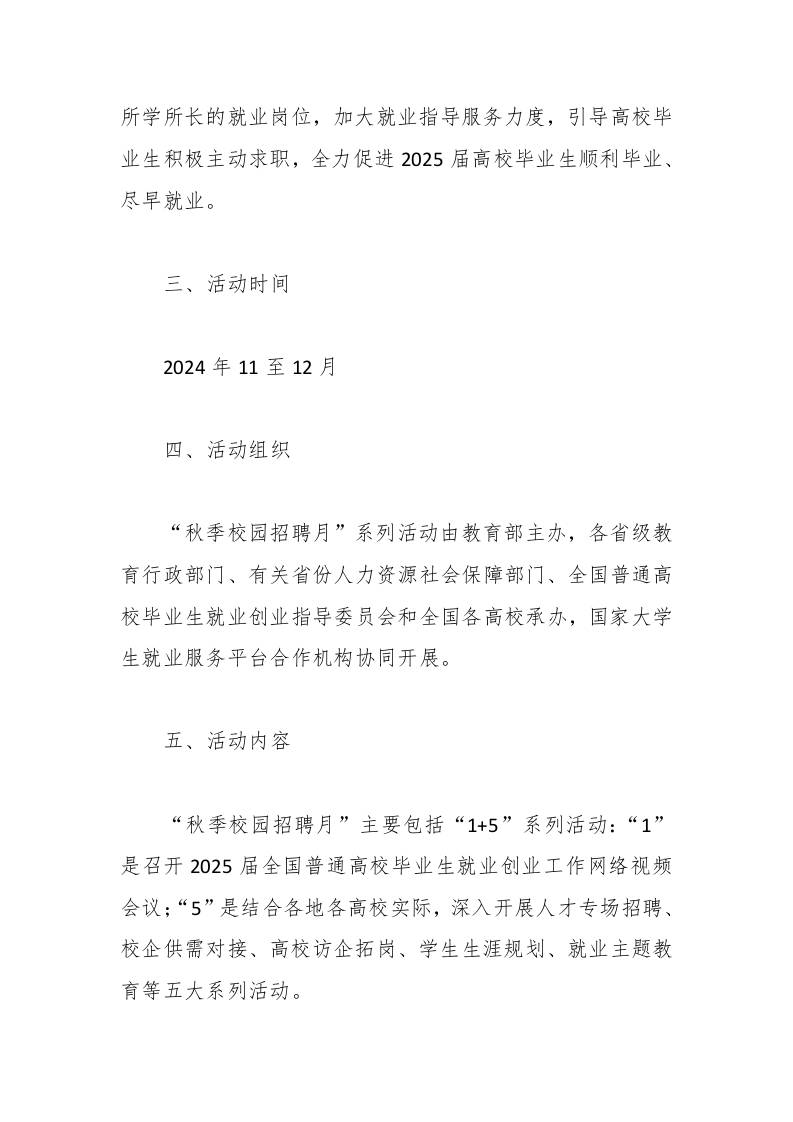 教育部办公厅关于开展2025届高校毕业生“秋季校园招聘月”系列活动的通知admin4个月前发布关注私信0448 ——预览已结束,还剩5页未读——开通会员后可免费下载高清完整文档 教育部办公厅关于开展2025届高校毕业生“秋季校园招聘月”系列活动的通知此内容为付费资源,请付费后查看¥9.9黄金会员免费钻石会员免费暂时无法购买,请与站长联系您当前未登录!建议登陆后购买,可保存购买订单格式docx页数7 页大小15.07 KB付费资源© 版权声明文章版权归作者所有,未经允许请勿转载。THE END管理相关 喜欢就支持一下吧点赞8 分享QQ空间微博QQ好友海报分享复制链接收藏