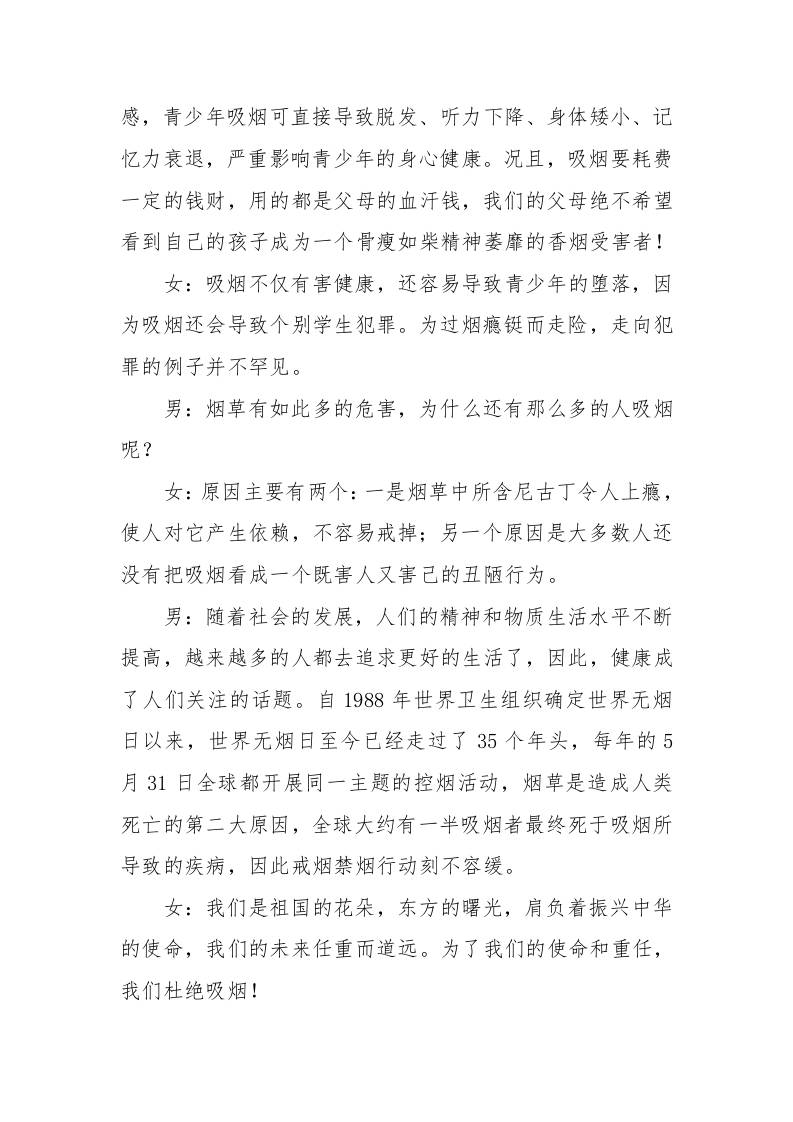 远离烟草,从你我做起——第38个“世界无烟日”红领巾广播稿admin4个月前发布关注私信0377 ——预览已结束,还剩2页未读——开通会员后可免费下载高清完整文档 远离烟草,从你我做起——第38个“世界无烟日”红领巾广播稿此内容为付费资源,请付费后查看¥9.9黄金会员免费钻石会员免费暂时无法购买,请与站长联系您当前未登录!建议登陆后购买,可保存购买订单格式docx页数4 页大小13.08 KB付费资源© 版权声明文章版权归作者所有,未经允许请勿转载。THE END管理相关 喜欢就支持一下吧点赞7 分享QQ空间微博QQ好友海报分享复制链接收藏