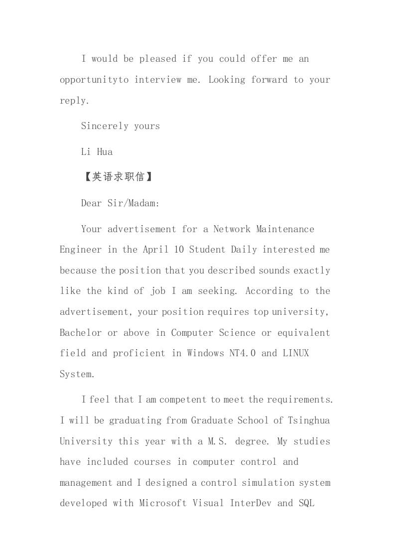 专职院校学生毕业自荐信范文09-英语求职信admin4个月前发布关注私信04912 ——预览已结束,还剩3页未读——开通会员后可免费下载高清完整文档 专职院校学生毕业自荐信范文09-英语求职信此内容为付费资源,请付费后查看¥9.9黄金会员免费钻石会员免费暂时无法购买,请与站长联系您当前未登录!建议登陆后购买,可保存购买订单格式doc页数5 页大小22.50 KB付费资源© 版权声明文章版权归作者所有,未经允许请勿转载。THE END管理相关 喜欢就支持一下吧点赞12 分享QQ空间微博QQ好友海报分享复制链接收藏