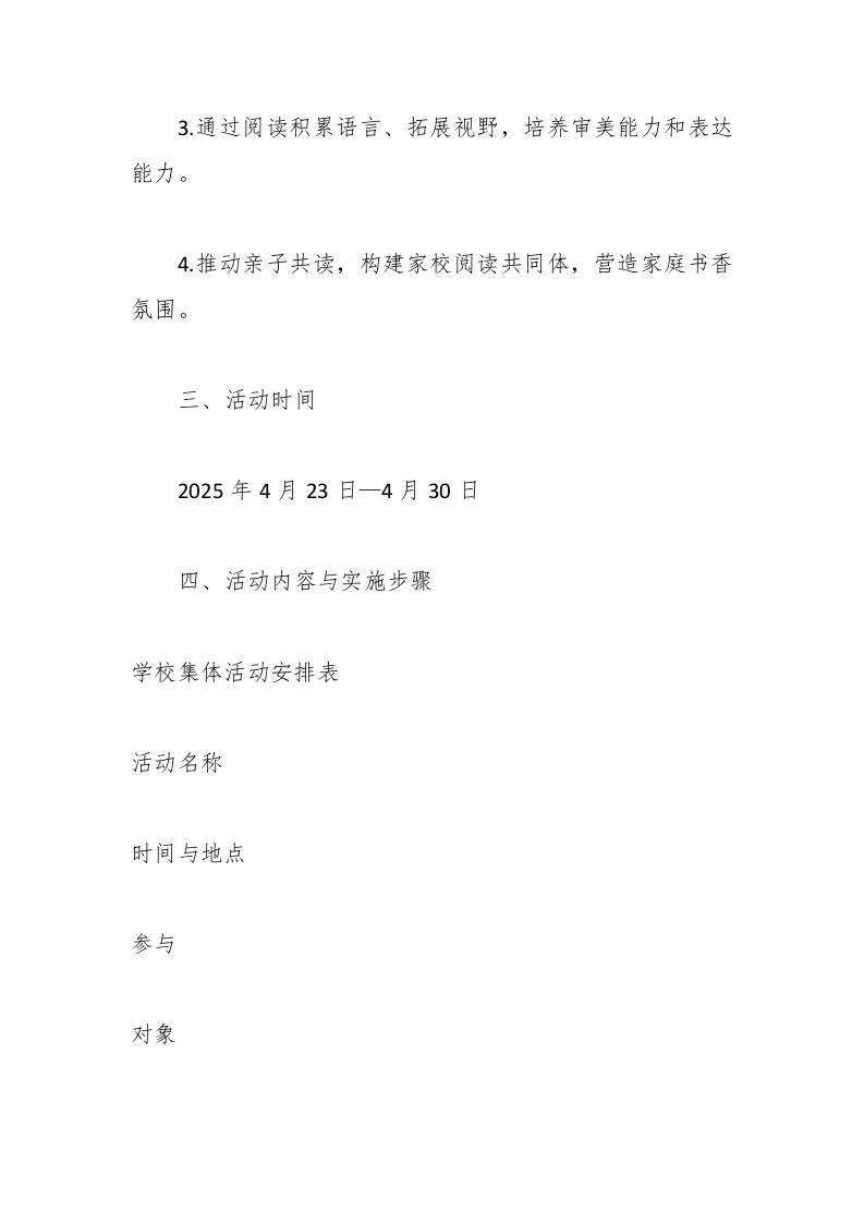 2025年世界读书日主题活动方案:字里行间藏星河,阅读点亮少年梦admin4个月前发布关注私信0277 ——预览已结束,还剩13页未读——开通会员后可免费下载高清完整文档 2025年世界读书日主题活动方案:字里行间藏星河,阅读点亮少年梦此内容为付费资源,请付费后查看¥9.9黄金会员免费钻石会员免费暂时无法购买,请与站长联系您当前未登录!建议登陆后购买,可保存购买订单格式docx页数15 页大小18.19 KB付费资源© 版权声明文章版权归作者所有,未经允许请勿转载。THE END管理相关 喜欢就支持一下吧点赞7 分享QQ空间微博QQ好友海报分享复制链接收藏