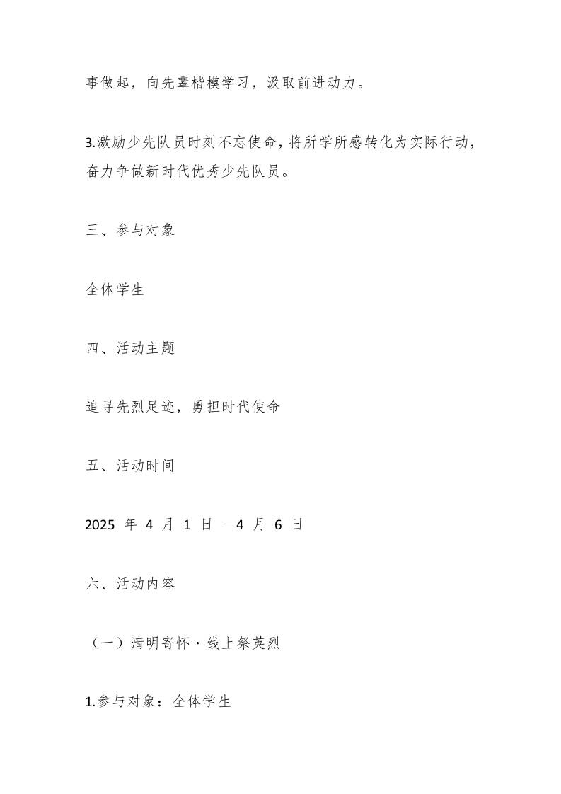 2025年中小学清明节主题活动方案:追寻先烈足迹,勇担时代使命admin4个月前发布关注私信04915 ——预览已结束,还剩5页未读——开通会员后可免费下载高清完整文档 2025年中小学清明节主题活动方案:追寻先烈足迹,勇担时代使命此内容为付费资源,请付费后查看¥9.9黄金会员免费钻石会员免费暂时无法购买,请与站长联系您当前未登录!建议登陆后购买,可保存购买订单格式docx页数7 页大小14.41 KB付费资源© 版权声明文章版权归作者所有,未经允许请勿转载。THE END管理相关 喜欢就支持一下吧点赞15 分享QQ空间微博QQ好友海报分享复制链接收藏
