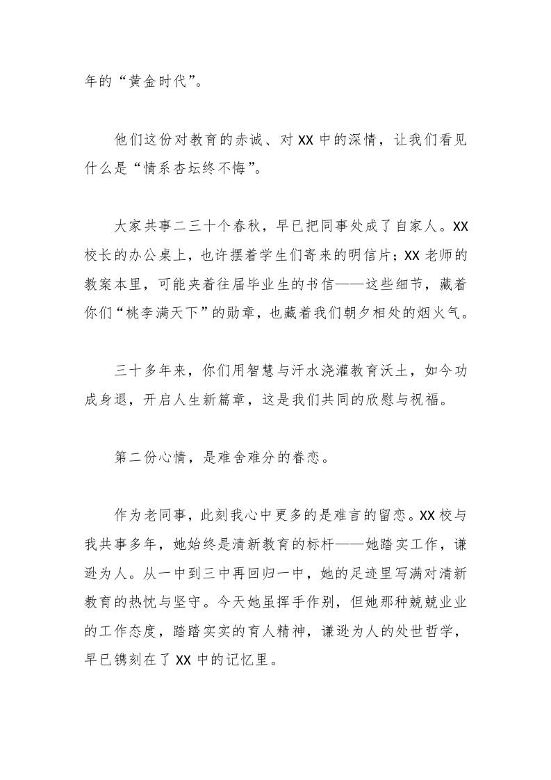 在XX校长、XX老师荣休欢送会上的讲话:三重心情贺同事荣休admin3个月前发布关注私信02011 ——预览已结束,还剩2页未读——开通会员后可免费下载高清完整文档 在XX校长、XX老师荣休欢送会上的讲话:三重心情贺同事荣休此内容为付费资源,请付费后查看¥9.9黄金会员免费钻石会员免费暂时无法购买,请与站长联系您当前未登录!建议登陆后购买,可保存购买订单格式docx页数4 页大小13.72 KB付费资源© 版权声明文章版权归作者所有,未经允许请勿转载。THE END发言稿 喜欢就支持一下吧点赞11 分享QQ空间微博QQ好友海报分享复制链接收藏