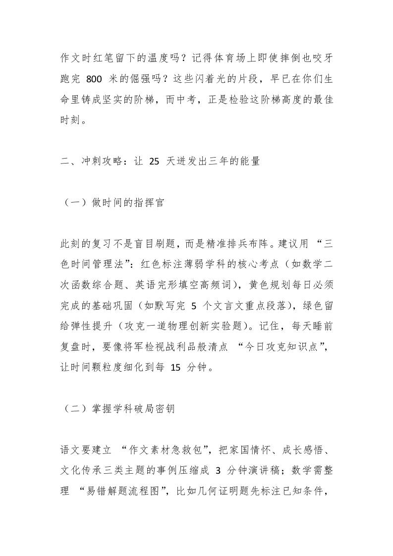 2025中考“倒计时25天”动员会,校长致辞:让我们以战士的姿态,吹响最后的冲锋号admin3个月前发布关注私信0508 ——预览已结束,还剩2页未读——开通会员后可免费下载高清完整文档 2025中考“倒计时25天”动员会,校长致辞:让我们以战士的姿态,吹响最后的冲锋号此内容为付费资源,请付费后查看¥9.9黄金会员免费钻石会员免费暂时无法购买,请与站长联系您当前未登录!建议登陆后购买,可保存购买订单格式docx页数4 页大小13.53 KB付费资源© 版权声明文章版权归作者所有,未经允许请勿转载。THE END发言稿 喜欢就支持一下吧点赞8 分享QQ空间微博QQ好友海报分享复制链接收藏