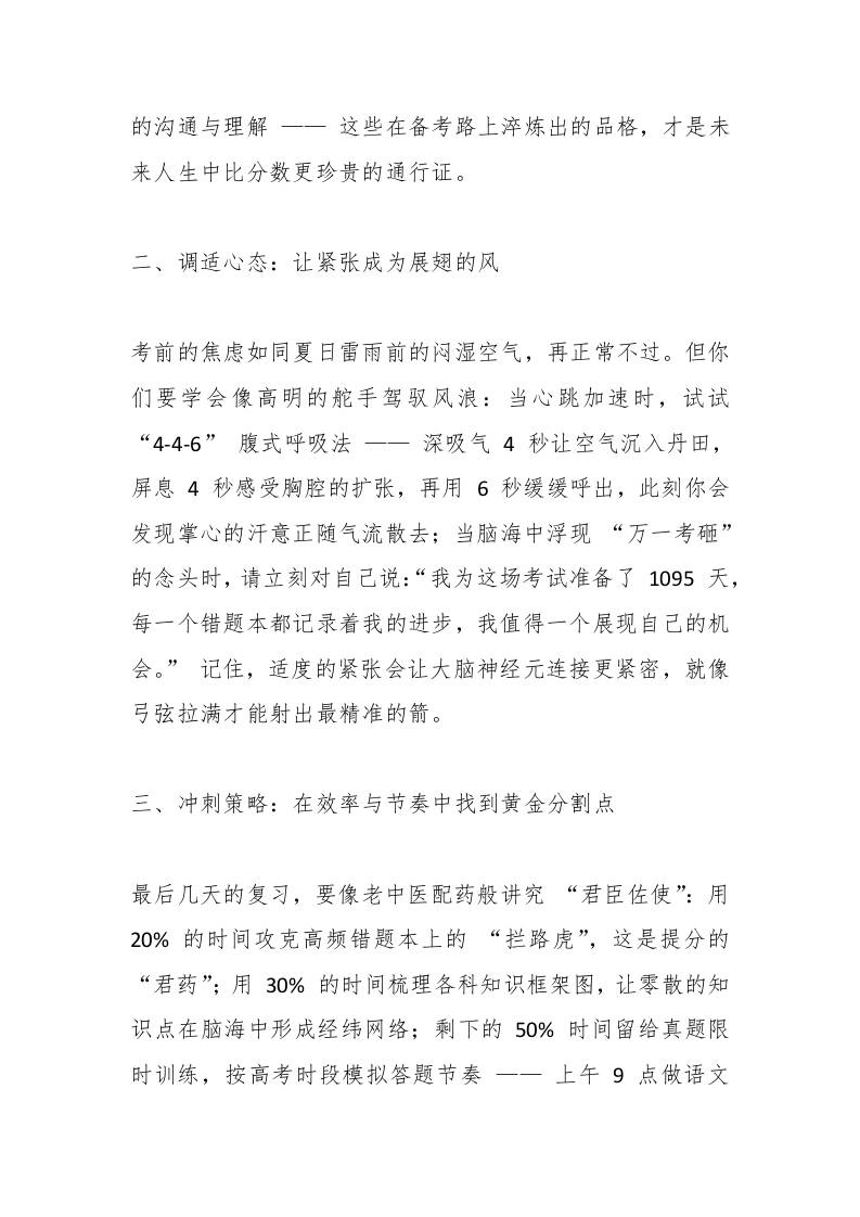 校长在2025届高三学子高考出征仪式上的讲话admin3个月前发布关注私信0468 ——预览已结束,还剩3页未读——开通会员后可免费下载高清完整文档 校长在2025届高三学子高考出征仪式上的讲话此内容为付费资源,请付费后查看¥9.9黄金会员免费钻石会员免费暂时无法购买,请与站长联系您当前未登录!建议登陆后购买,可保存购买订单格式docx页数5 页大小14.94 KB付费资源© 版权声明文章版权归作者所有,未经允许请勿转载。THE END发言稿 喜欢就支持一下吧点赞8 分享QQ空间微博QQ好友海报分享复制链接收藏