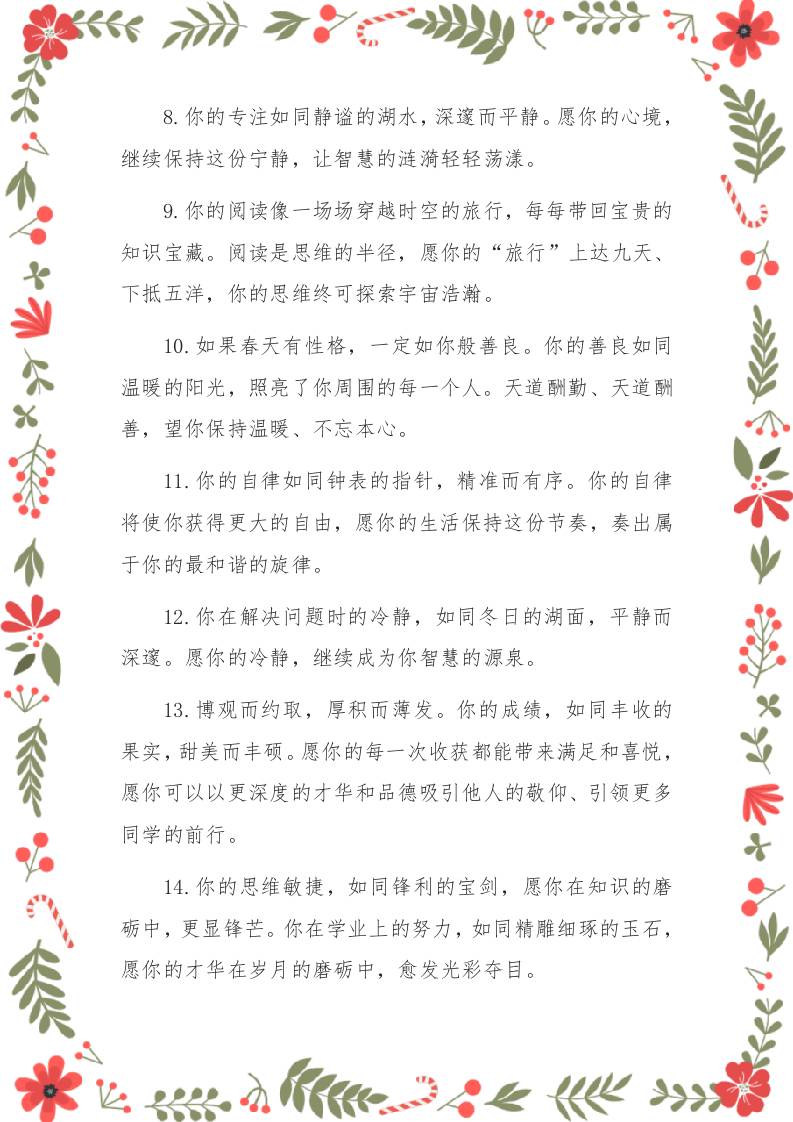 50句期末评语,给不同学生的诗意评价admin3个月前发布关注私信02515 ——预览已结束,还剩5页未读——开通会员后可免费下载高清完整文档 50句期末评语,给不同学生的诗意评价此内容为付费资源,请付费后查看¥9.9黄金会员免费钻石会员免费暂时无法购买,请与站长联系您当前未登录!建议登陆后购买,可保存购买订单格式docx页数7 页大小360.81 KB付费资源© 版权声明文章版权归作者所有,未经允许请勿转载。THE END评语 喜欢就支持一下吧点赞15 分享QQ空间微博QQ好友海报分享复制链接收藏