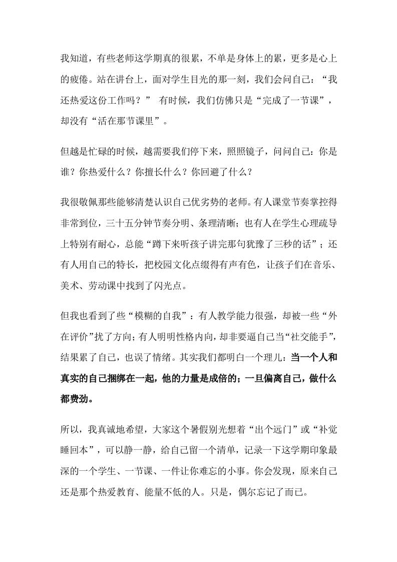 2025年暑期前全体教师大会,校长讲话:在坚守中遇见自己,在磨砺中愈见本真,在教育中育见未来!admin2个月前发布关注私信04211 ——预览已结束,还剩3页未读——开通会员后可免费下载高清完整文档 2025年暑期前全体教师大会,校长讲话:在坚守中遇见自己,在磨砺中愈见本真,在教育中育见未来!此内容为付费资源,请付费后查看¥9.9黄金会员免费钻石会员免费暂时无法购买,请与站长联系您当前未登录!建议登陆后购买,可保存购买订单格式docx页数5 页大小17.60 KB付费资源© 版权声明文章版权归作者所有,未经允许请勿转载。THE END发言稿 喜欢就支持一下吧点赞11 分享QQ空间微博QQ好友海报分享复制链接收藏