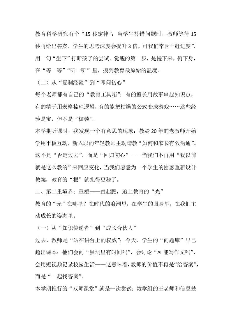 暑假前最后一次教师大会校长讲话稿:三重境界,重识教育的“根”与“光”admin2个月前发布关注私信0298 ——预览已结束,还剩3页未读——开通会员后可免费下载高清完整文档 暑假前最后一次教师大会校长讲话稿:三重境界,重识教育的“根”与“光”此内容为付费资源,请付费后查看¥9.9黄金会员免费钻石会员免费暂时无法购买,请与站长联系您当前未登录!建议登陆后购买,可保存购买订单格式docx页数5 页大小14.63 KB付费资源© 版权声明文章版权归作者所有,未经允许请勿转载。THE END发言稿 喜欢就支持一下吧点赞8 分享QQ空间微博QQ好友海报分享复制链接收藏