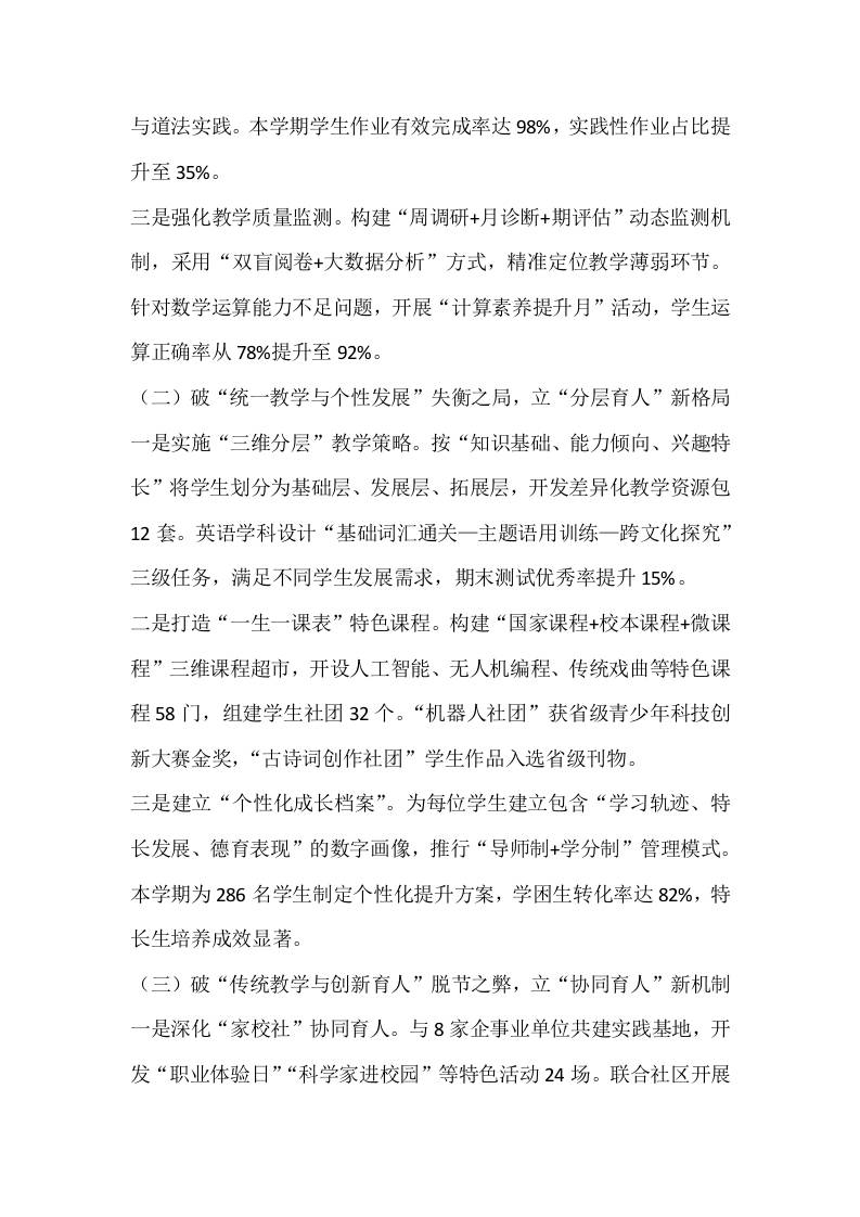 分管教学副校长期末工作总结:三破三立促双减,四维聚力提质量admin2个月前发布关注私信05112 ——预览已结束,还剩4页未读——开通会员后可免费下载高清完整文档 分管教学副校长期末工作总结:三破三立促双减,四维聚力提质量此内容为付费资源,请付费后查看¥9.9黄金会员免费钻石会员免费暂时无法购买,请与站长联系您当前未登录!建议登陆后购买,可保存购买订单格式docx页数6 页大小15.48 KB付费资源© 版权声明文章版权归作者所有,未经允许请勿转载。THE END工作总结 喜欢就支持一下吧点赞12 分享QQ空间微博QQ好友海报分享复制链接收藏