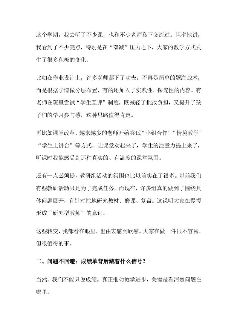 期末教学质量分析会,校长讲话:2025年教学质量新征程,“每一节课,都是提升的起点”!admin6个月前发布关注私信03213 ——预览已结束,还剩4页未读——开通会员后可免费下载高清完整文档 期末教学质量分析会,校长讲话:2025年教学质量新征程,“每一节课,都是提升的起点”!此内容为付费资源,请付费后查看¥9.9黄金会员免费钻石会员免费暂时无法购买,请与站长联系您当前未登录!建议登陆后购买,可保存购买订单格式docx页数6 页大小17.66 KB付费资源© 版权声明文章版权归作者所有,未经允许请勿转载。THE END发言稿 喜欢就支持一下吧点赞13 分享QQ空间微博QQ好友海报分享复制链接收藏