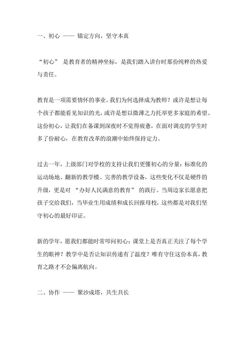 2025秋季开学前全体教师会,校长讲话:以初心、协作、精进、担当。4个关键词,坚守教育本真,共赴育人征程admin2个月前发布关注私信03413 ——预览已结束,还剩3页未读——开通会员后可免费下载高清完整文档 2025秋季开学前全体教师会,校长讲话:以初心、协作、精进、担当。4个关键词,坚守教育本真,共赴育人征程此内容为付费资源,请付费后查看¥9.9黄金会员免费钻石会员免费暂时无法购买,请与站长联系您当前未登录!建议登陆后购买,可保存购买订单格式docx页数5 页大小14.27 KB付费资源© 版权声明文章版权归作者所有,未经允许请勿转载。THE END发言稿 喜欢就支持一下吧点赞13 分享QQ空间微博QQ好友海报分享复制链接收藏