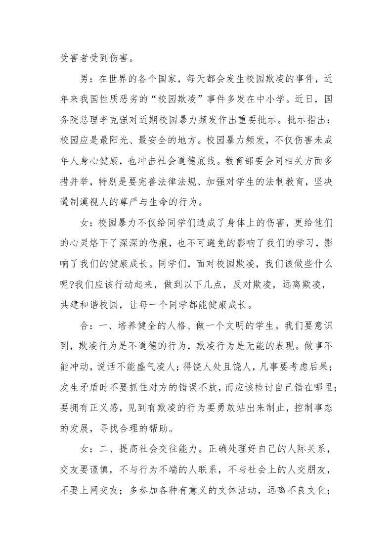 2025年中小学预防校园欺凌红领巾广播稿:预防校园欺凌护航健康成长admin2个月前发布关注私信04912 ——预览已结束,还剩2页未读——开通会员后可免费下载高清完整文档 2025年中小学预防校园欺凌红领巾广播稿:预防校园欺凌护航健康成长此内容为付费资源,请付费后查看¥9.9黄金会员免费钻石会员免费暂时无法购买,请与站长联系您当前未登录!建议登陆后购买,可保存购买订单格式docx页数4 页大小16.22 KB付费资源© 版权声明文章版权归作者所有,未经允许请勿转载。THE END发言稿 喜欢就支持一下吧点赞12 分享QQ空间微博QQ好友海报分享复制链接收藏