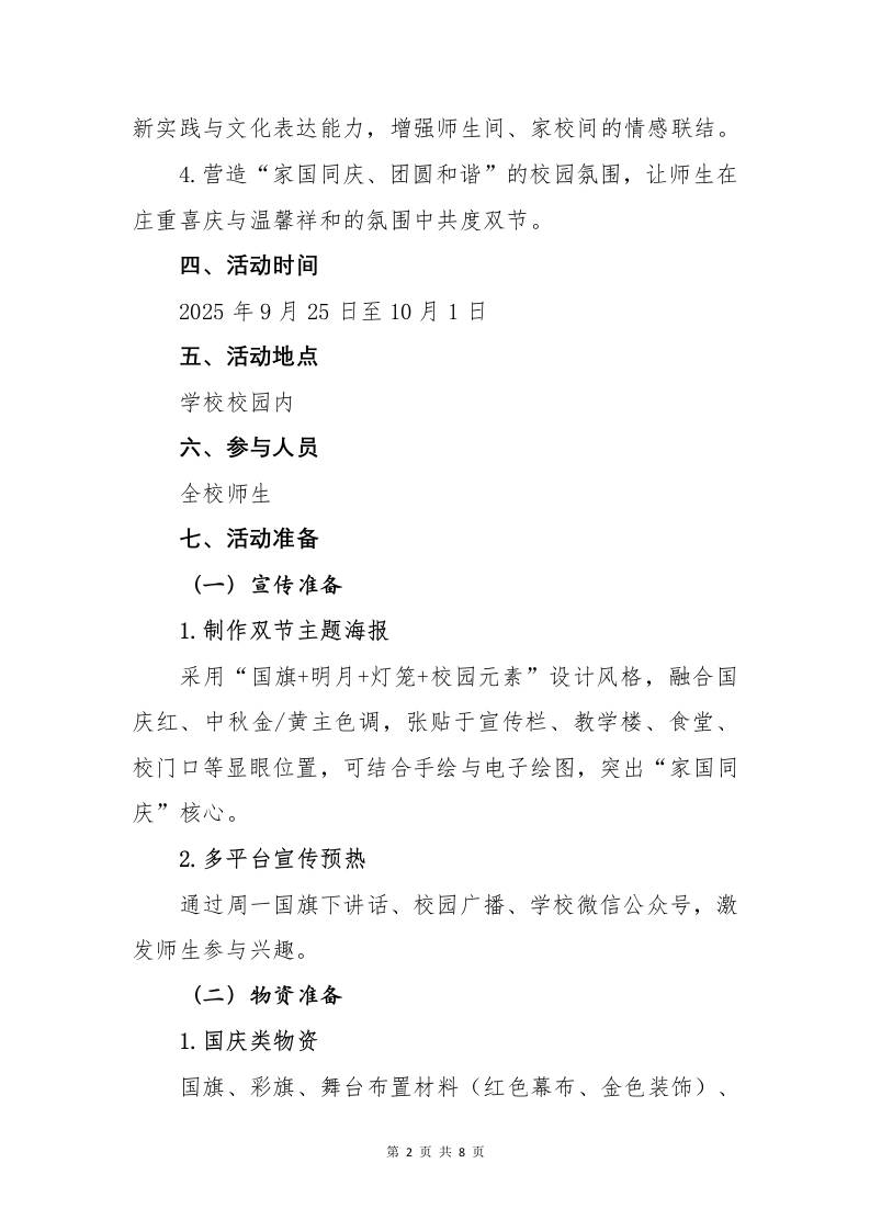 2025年学校庆国庆迎中秋双节主题活动方案:七十六载谱华章,双节同庆家国梦admin1个月前发布关注私信0406 ——预览已结束,还剩6页未读——开通会员后可免费下载高清完整文档 2025年学校庆国庆迎中秋双节主题活动方案:七十六载谱华章,双节同庆家国梦此内容为付费资源,请付费后查看¥9.9黄金会员免费钻石会员免费暂时无法购买,请与站长联系您当前未登录!建议登陆后购买,可保存购买订单格式docx页数8 页大小311.08 KB付费资源© 版权声明文章版权归作者所有,未经允许请勿转载。THE END管理相关 喜欢就支持一下吧点赞6 分享QQ空间微博QQ好友海报分享复制链接收藏