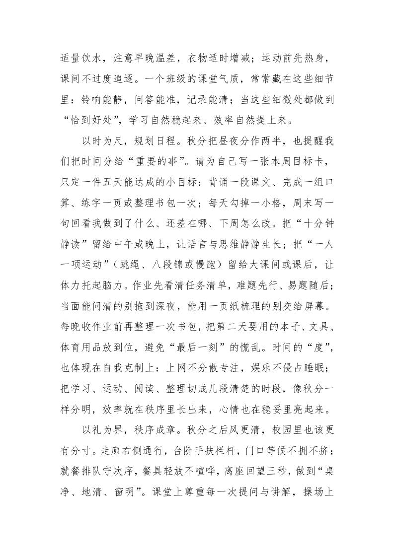 2025年秋季第一学期校长国旗下讲话稿22周:第4周昼夜等分如秤,学行进退有章admin1个月前发布关注私信0289 ——预览已结束,还剩1页未读——开通会员后可免费下载高清完整文档 2025年秋季第一学期校长国旗下讲话稿22周:第4周昼夜等分如秤,学行进退有章此内容为付费资源,请付费后查看¥9.9黄金会员免费钻石会员免费暂时无法购买,请与站长联系您当前未登录!建议登陆后购买,可保存购买订单格式docx页数3 页大小366.83 KB付费资源© 版权声明文章版权归作者所有,未经允许请勿转载。THE END国旗下讲话 喜欢就支持一下吧点赞9 分享QQ空间微博QQ好友海报分享复制链接收藏