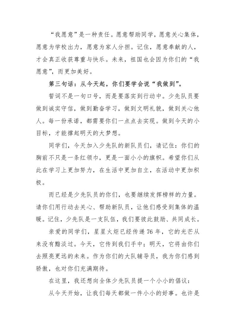 学校大队辅导员在第76个建队日暨新队员入队仪式上的讲话稿:红领巾的誓言星星火炬的接力admin1个月前发布关注私信05214 ——预览已结束,还剩1页未读——开通会员后可免费下载高清完整文档 学校大队辅导员在第76个建队日暨新队员入队仪式上的讲话稿:红领巾的誓言星星火炬的接力此内容为付费资源,请付费后查看¥9.9黄金会员免费钻石会员免费暂时无法购买,请与站长联系您当前未登录!建议登陆后购买,可保存购买订单格式docx页数3 页大小12.62 KB付费资源© 版权声明文章版权归作者所有,未经允许请勿转载。THE END发言稿 喜欢就支持一下吧点赞14 分享QQ空间微博QQ好友海报分享复制链接收藏