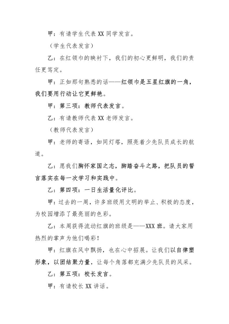 2025年秋季第一学期升旗仪式主持词(21周):第7周星星火炬照童梦,红花盛放向朝阳admin1个月前发布关注私信03014 ——预览已结束,还剩1页未读——开通会员后可免费下载高清完整文档 2025年秋季第一学期升旗仪式主持词(21周):第7周星星火炬照童梦,红花盛放向朝阳此内容为付费资源,请付费后查看¥9.9黄金会员免费钻石会员免费暂时无法购买,请与站长联系您当前未登录!建议登陆后购买,可保存购买订单格式docx页数3 页大小340.39 KB付费资源© 版权声明文章版权归作者所有,未经允许请勿转载。THE END国旗下讲话 喜欢就支持一下吧点赞14 分享QQ空间微博QQ好友海报分享复制链接收藏