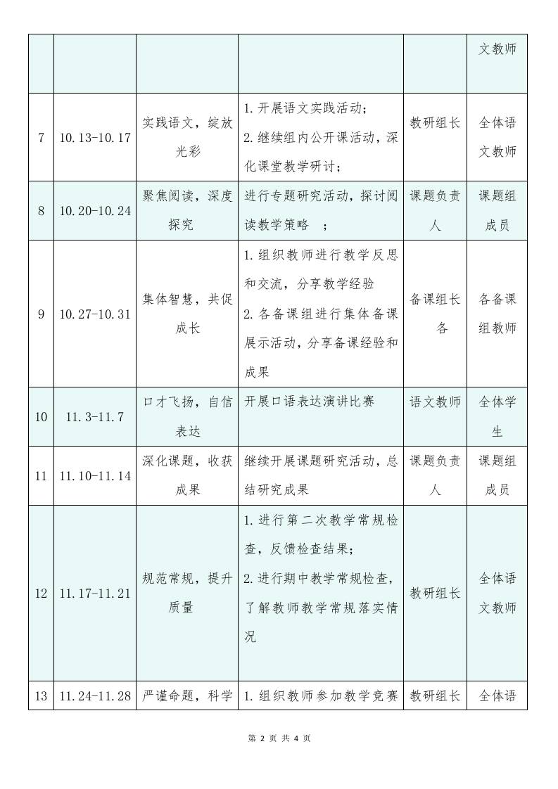 2025-2026学年第一学期语文教研组工作安排表:翰墨深耕育桃李,教研共育启新程admin1个月前发布关注私信0359 ——预览已结束,还剩2页未读——开通会员后可免费下载高清完整文档 2025-2026学年第一学期语文教研组工作安排表:翰墨深耕育桃李,教研共育启新程此内容为付费资源,请付费后查看¥9.9黄金会员免费钻石会员免费暂时无法购买,请与站长联系您当前未登录!建议登陆后购买,可保存购买订单格式docx页数4 页大小358.45 KB付费资源© 版权声明文章版权归作者所有,未经允许请勿转载。THE END教研资料 喜欢就支持一下吧点赞9 分享QQ空间微博QQ好友海报分享复制链接收藏